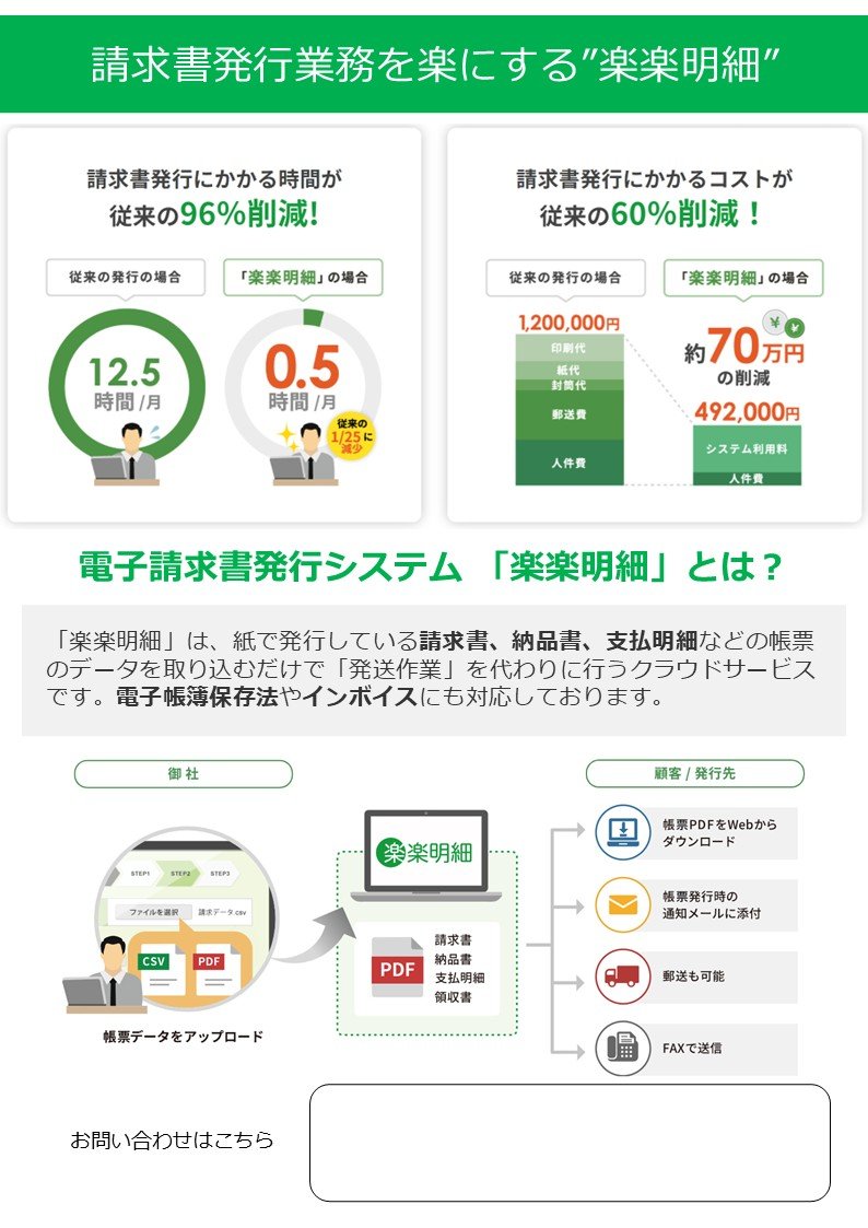 働きかた改革、生産性向上のためのDXとして、多数お問い合わせをいただいているラクス「楽楽明細」を